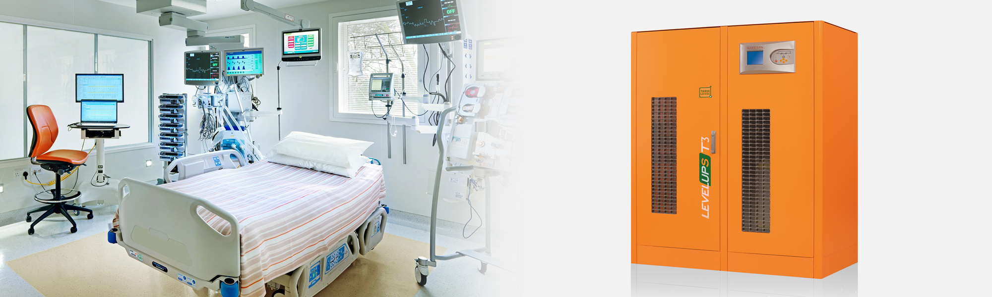 Yeni nesil 3 level teknolojisine sahip, yüksek verimlilik, yüksek güvenilirlik ve sağlamlığın mükemmel bileşimi olan, online 3 fazlı kesintisiz güç kaynağı LevelUps T3 serisi bir çok endüstrinin ve özellikle medikal sektörünün daha güvenilir güç talebini karşılamak için tasarlanmıştır.