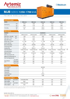 MJB SERİSİ 750-1100 kVA MJB SERİSİ 1250-1700 kVA