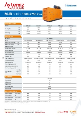 MJB SERİSİ 1900-2750 kVA MJS SERİSİ 220-440 kVA