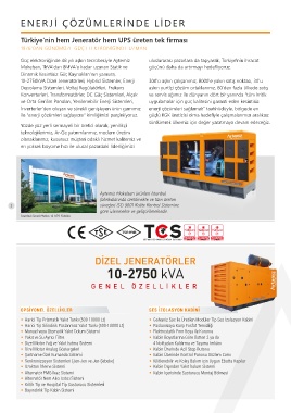 Türkiye’nin hem Jeneratör hem UPS üreten tek firması • Elektronik ya da Mekanik Tip Yakıt Sistemli • 60 Hz Çalışma Koşullarına Uygun