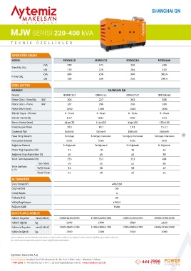 Motor Gücü - Stand By kW 52.8 66 72.6 99 Motor Gücü - Stand By kW 206 227 263 308
