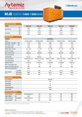 MJB SERİSİ 825-1250 kVA MJB SERİSİ 1400-1900 kVA