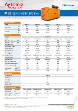 MJB SERİSİ 825-1250 kVA MJB SERİSİ 1400-1900 kVA