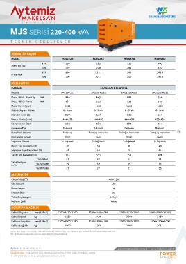 Motor Gücü - Stand By kW 1800 1980 2210 2450 Motor Gücü - Stand By kW 206 245 280 324