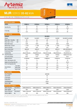 MJR SERİSİ 35-82 kVA MJR SERİSİ 94-150 kVA