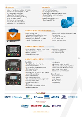 • Marş Motoru ve Şarj Alternatörlü • Stator Sargısı 2/3 Adım