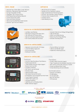 • Changeable Type Fuel and Oil Filter • Electronic Type Automatic Voltage Regulator